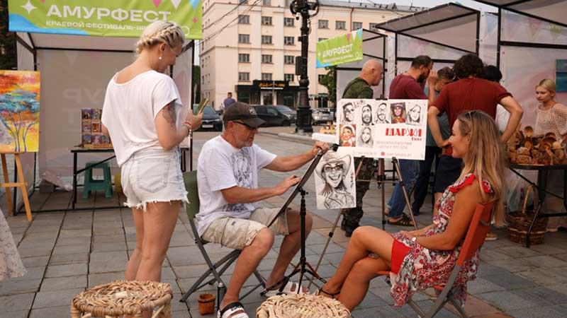Помимо насыщенной концертной и праздничной программы, традиционно проходила ярмарка, на которой более 200 мастеров декоративно-прикладного искусства края выставляли свои работы: сувенирную продукцию и украшения, авторских кукол и многое другое. Одной из необычных локаций "АмурФеста" стала передвижная выставка проектов резидентов лаборатории музейного дизайна от Хабаровского краевого музея имени Н.И. Гродекова. На ней можно было ознакомиться с идеями дизайн-проектов, созданных на основе этнографических коллекций музеев региона.